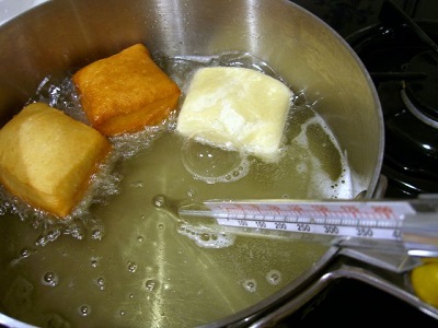 - Fry the beignets. A Dutch oven is the best vessel for home frying. When you add the beignets to the oil (370°F is best), use a heatproof spoon to spoon some of the hot oil over the beignets — it helps the beignets get their signature puff.